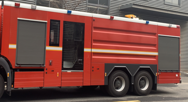 3.2 | 儲物箱:車輛設有(5個)防水、防塵的鋁合金卷簾門,卷簾門觸發(fā)電磁傳感器自動開關LED照明;在泵室兩側卷簾門下方及尾部設有翻轉腳踏板,踏板行程由氣彈簧控制,踏板由整塊特制高強度鋁型材裁剪并與附件無焊接組裝而成、表面防滑,踏板關閉時可通過卷簾門壓鎖,每個踏板可稱重靜載荷250kg,便于取放儲物箱內器材。 |
