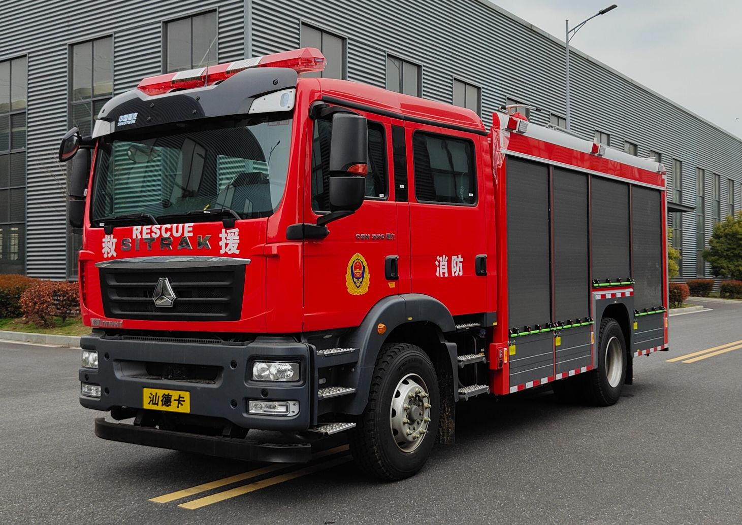 采用重汽汕德卡ZZ5206N471GF5 4X2消防車專用底盤排放標(biāo)準(zhǔn)為國六,發(fā)動機(jī)功率257kW(350HP)。